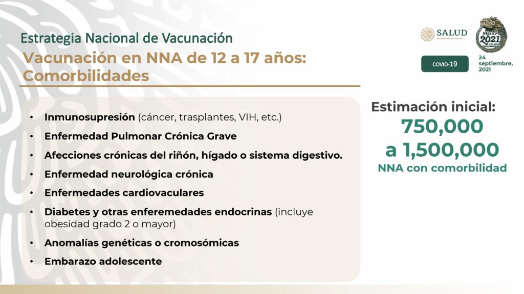 Córdoba,Ver.– La Secretaria de Bienestar se prepara en conjunto con SESVER e IMSS , para la campaña de vacunación NNA (Niños, Niñas y Adolescentes), luego del anuncio que hiciera Hugo López Gatell la mañana de este viernes, sobre la estrategia nacional de vacunación a niños y niñas de 12 a 17 años, en condiciones de vulnerabilidad, dando prioridad a pequeños que sufren, inmunosupresión, enfermedades pulmonares crónicas graves, afecciones crónicas de riñón, hígado, sistema digestivo, enfermedades neurológicas, cardiovasculares, diabetes y otras enfermedades endocrinas, anomalías genéticas.
