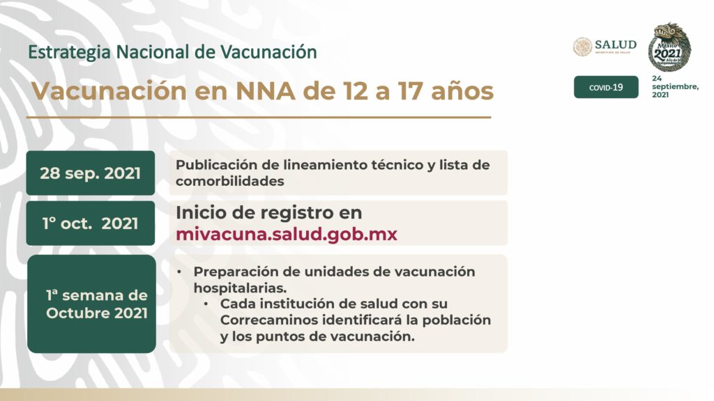 La primera semana de octubre se tendrán las primeras fechas de los lugares de vacunación.
