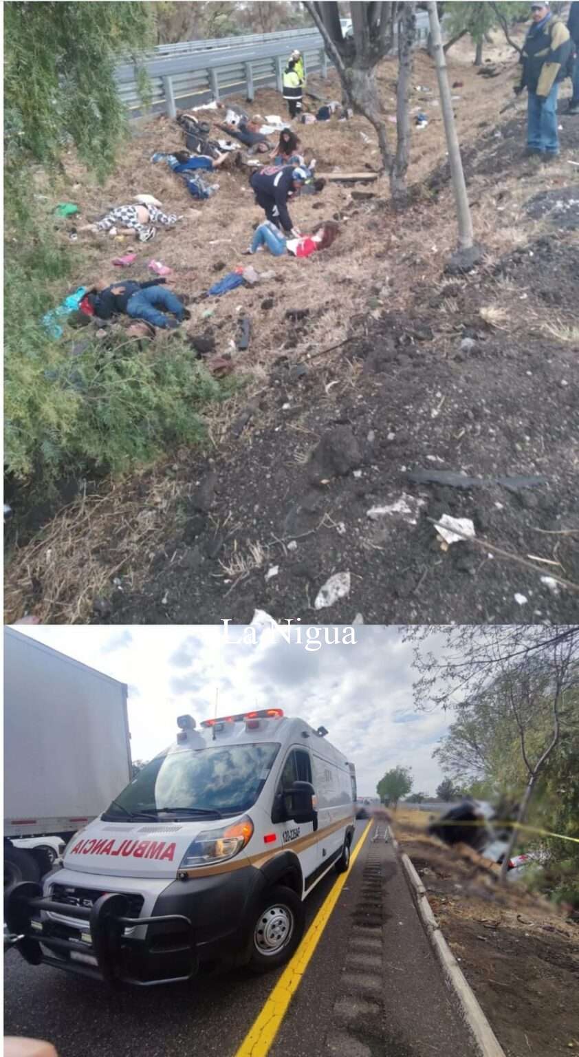 Querétaro.- 12 personas fallecidas y 9 heridas hasta el momento es el resultado del accidente de este medio día de una camioneta de transporte en la México – Querétaro, a la altura de la comunidad de Ruano, municipio de #Polotitlán, en dirección a Querétaro.