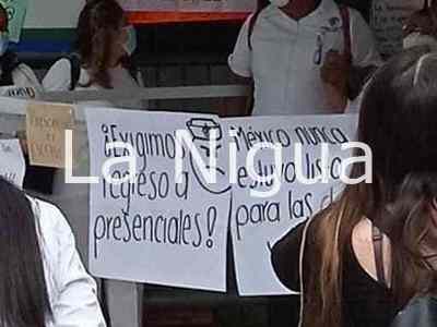Decenas de estudiantes de diferentes carreras de la Facultad de Medicina ubicada en la avenida Adolfo Ruiz Cortines de esta ciudad de Xalapa, bloquearon los carriles de esta arteria, debido a que exigen tanto al director como al rector de la UV, regresar a clases presenciales “Porque no es justo que nosotros somos los futuros profesionistas de la salud y que no se tengan clases todavía presenciales, ya se cumplieron dos años con clases en modo remoto, es por eso que estamos haciendo esta manifestación para que ya este próximo lunes todas las áreas de esta facultad medicina tengamos clases”.