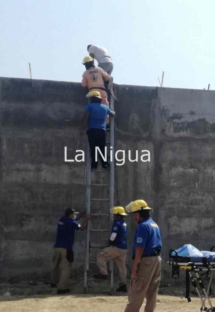 TUXPAN, VER.- Un aparatoso percance, se suscitó cuando un obrero, quién laboraba en la construcción de un muro de seguridad del CERESO, de esta ciudad.