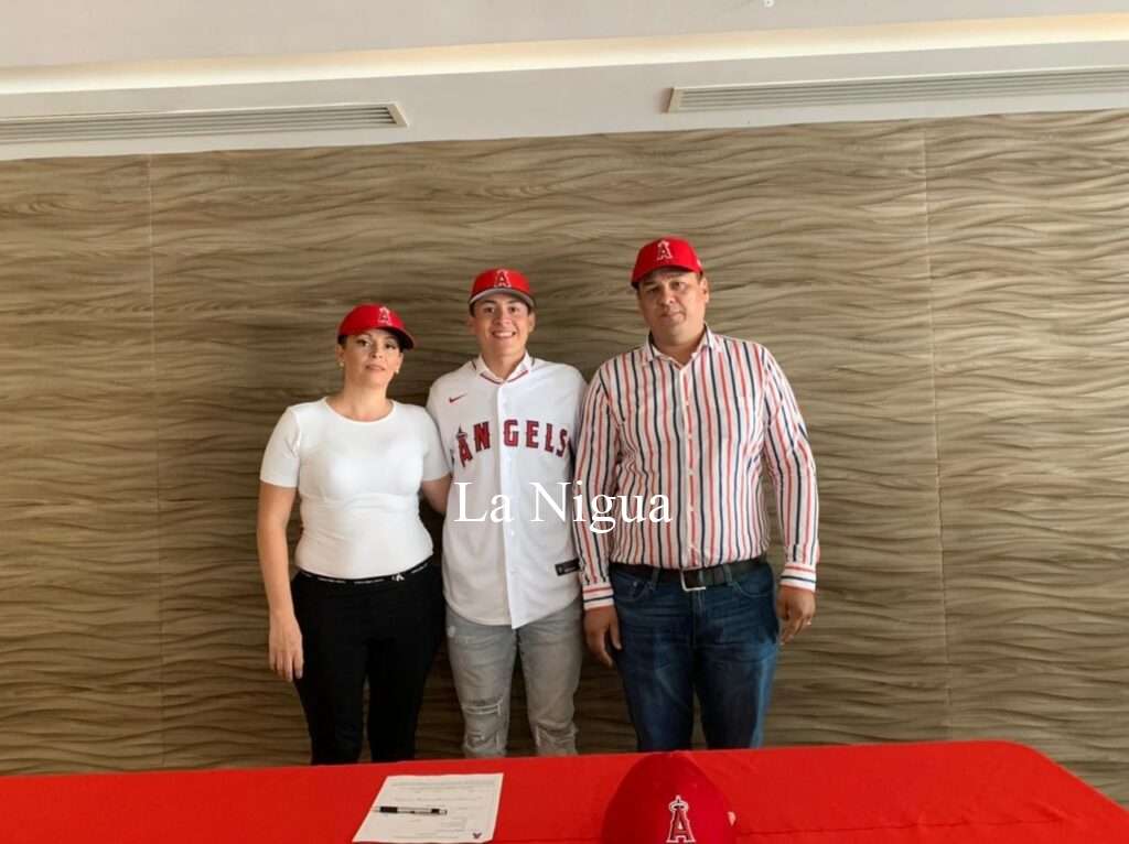 “De la mano de Dios oficialmente Angels Anaheim gracias Dios y a la virgencita de Guadalupe, gracias papás, abuelo, por siempre apoyarme, los tiempos de Dios son perfectos y sus planes maravillosos, este logro va al cielo abuelita Rosalina Barriga orgullosamente; portaré el número 10 que desde niño me lo diste”.