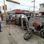 Los hechos fueron en la esquina de la avenida Guadalupe Victoria con la calle Juan Soto de la Colonia Centro, donde la camioneta que transportaba a los obreros terminó volcada sobre su costado.
