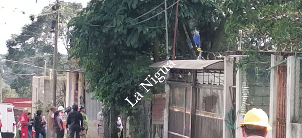 Tras el accidente el empleado quedó colgando de la escalera ya sin vida, en tanto vecinos solicitaban la presencia de los cuerpos de rescate.