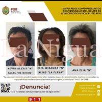 Al continuar con las diligencias fue localizada un domicilio a poco metros del lugar del macabro hallazgo dónde fueron aseguradas tres personas y localizaron indicios de hechos delictivos, tratándose de: KEVIN ALEXIS N alias “El Kevin”, ELIA MIRANDA N alias “La Flaka” y ANA N en forma respectiva.