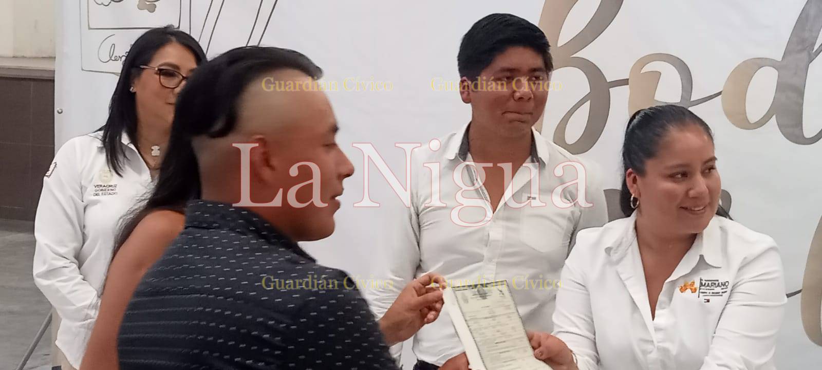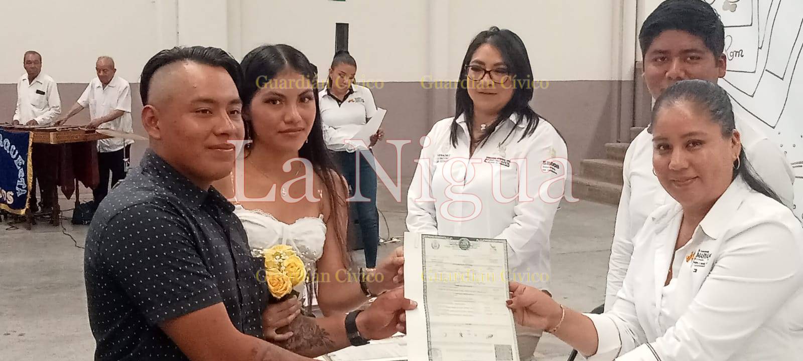 Asimismo, la pareja más joven en legalizar su unión Marcos Yair y Joana Guadalupe.