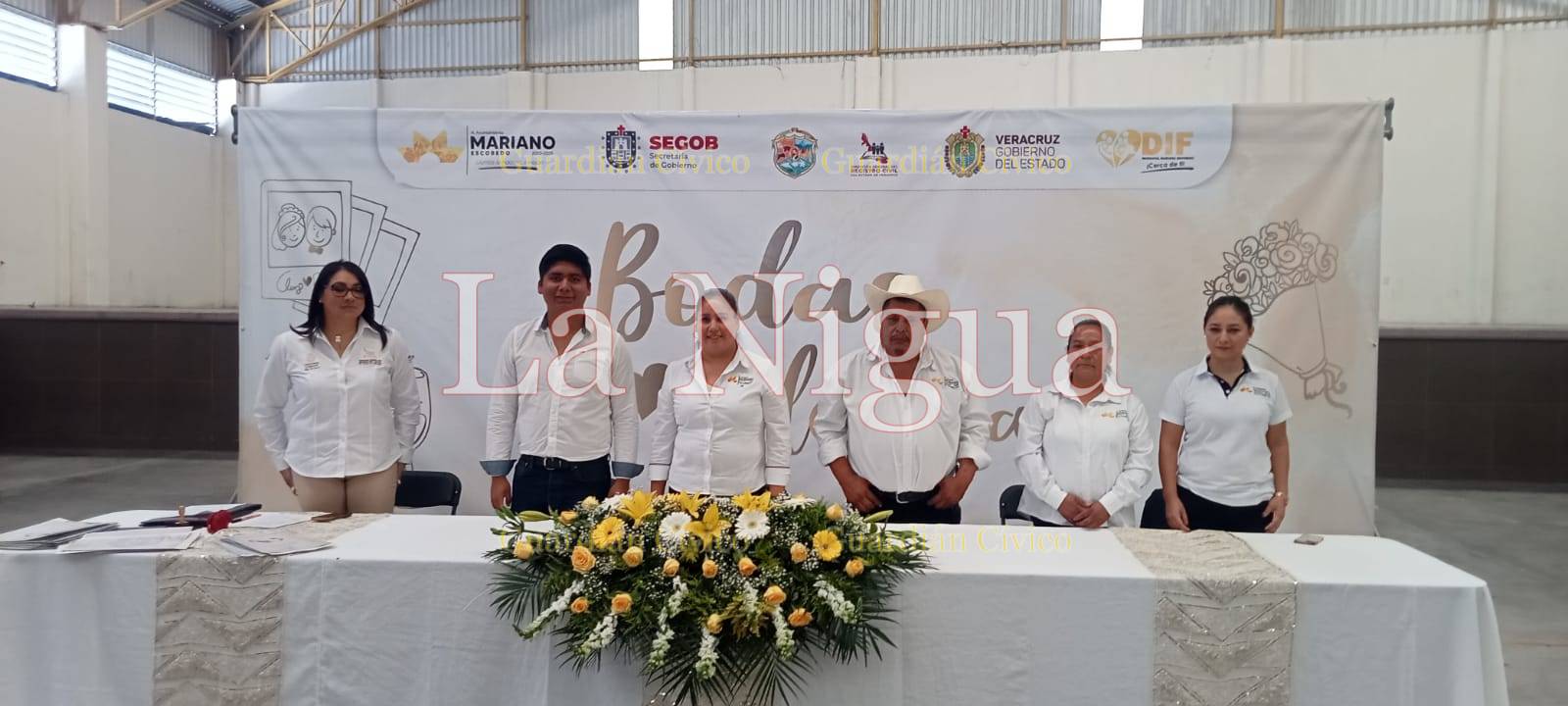 Mariano Escobedo, Ver.- El H. Ayuntamiento que encabeza la alcaldesa Guadalupe Durán Alcántara a través del Sistema DIF municipal que dirige Luis Ángel Montiel Durán y la oficialía del Registro Civil a cargo de la licenciada María José González Rodríguez, llevaron a cabo el acto protocolario de Bodas colectivas que tuvo lugar en el auditorio “Jesús María”.