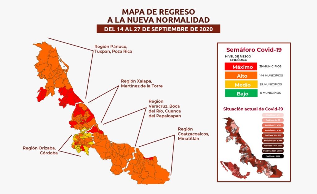 La Secretaría de Salud presentó el Semáforo de Riesgo Epidemiológico regional, aplicable del lunes 14 al domingo 27 de septiembre, el cual queda establecido de la siguiente manera: