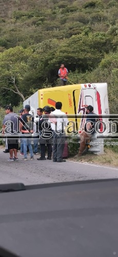 Córdoba.- Al menos cinco personas resultaron heridas tras la volacadura de un autobús de pasajeros sobre la carretera federal Tehuacán-Orizaba.