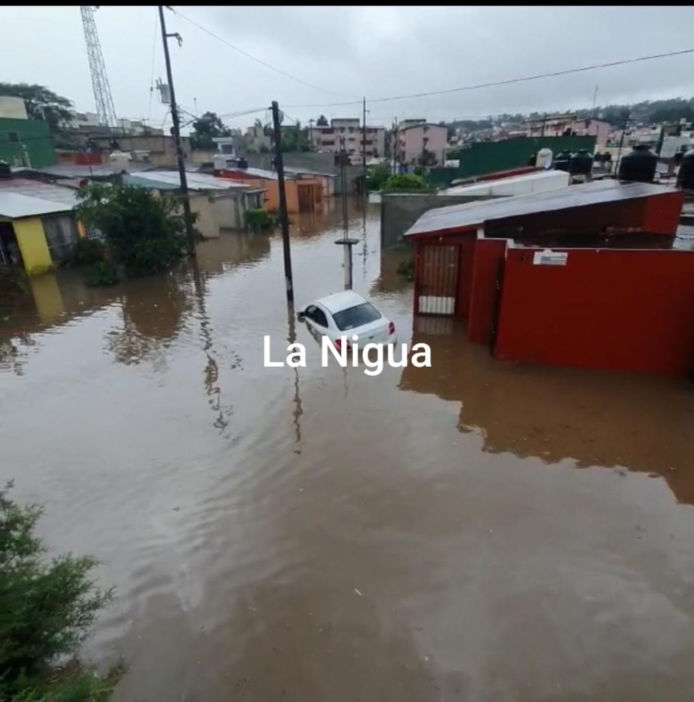 En la avenida Mártires 28 de agosto se salió Río Carneros afectado a decenas de viviendas, en la calle Hernández Castillo en agua rebasó el camellón.