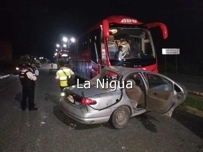 Tomando conocimiento, personal de la Policía Municipal, Guardia Nacional y Tránsito del Estado quienes calcularon los daños en más de 40 mil pesos, ya que el automóvil fue pérdida total y el autobús sufrió fuertes daños, siendo puesto este accidente a disposición de las autoridades correspondientes para deslindar responsabilidades.