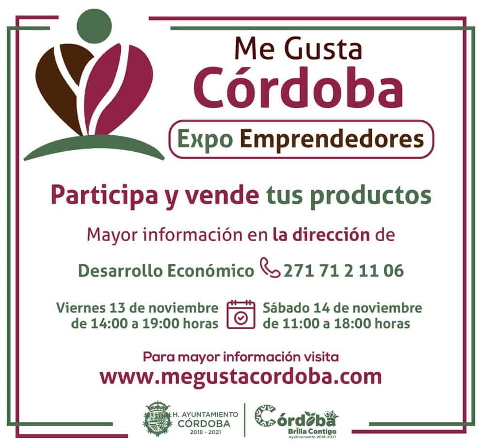 El Ayuntamiento de Córdoba, a través de la Dirección de Desarrollo Económico, invita a las micro, pequeñas y medianas empresas (MiPyMes), así como a emprendedores de la ciudad a participar en la primer Expo Emprendedores Me Gusta Córdoba que tendrá lugar del viernes 14 al sábado 15 de noviembre.