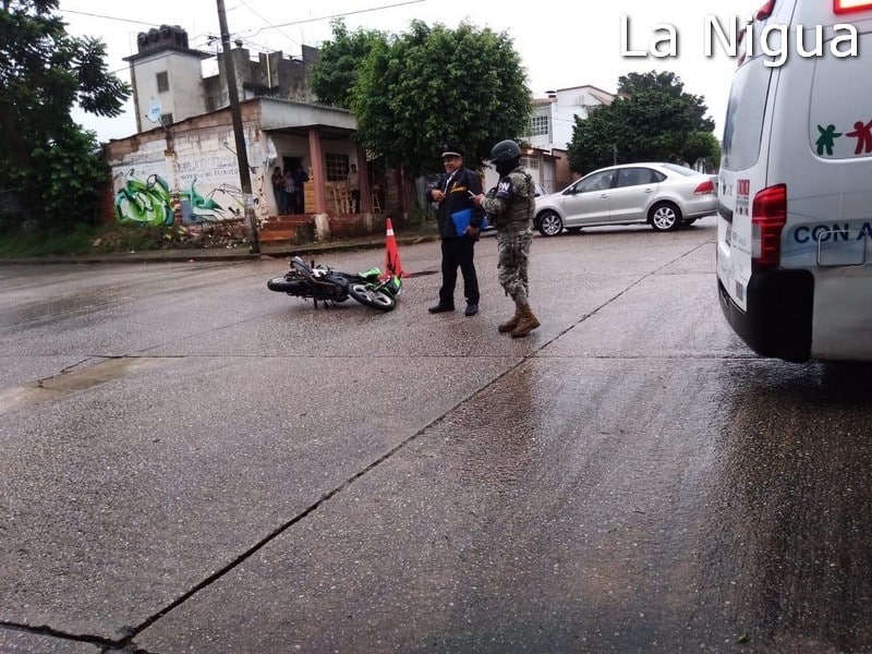 Acayucan, Ver.- Un joven conductor, derrapó esta tarde de su motocicleta cuando circulaba sobre la calle Flores Magón esquina Mariano Abasolo en el barrio Tamarindo.