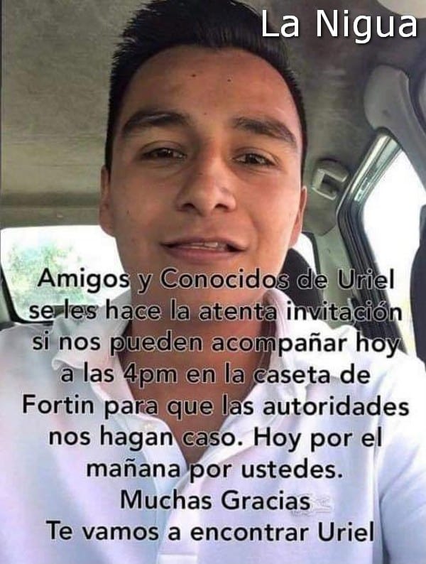 Finalmente fueron atendidos por el Subdelegado del Mando Único Región XXI, quien les indicó que se trasladaron a la Fiscalía del Estado, Fiscalía General de la República y la Unidad Especializada Contra el Secuestro, pues son las dependencias que se encargan de esos casos. Así mismo les aseguró que por parte de la SSP contarán con todo el apoyo para intentar dar con el paradero de Uriel.