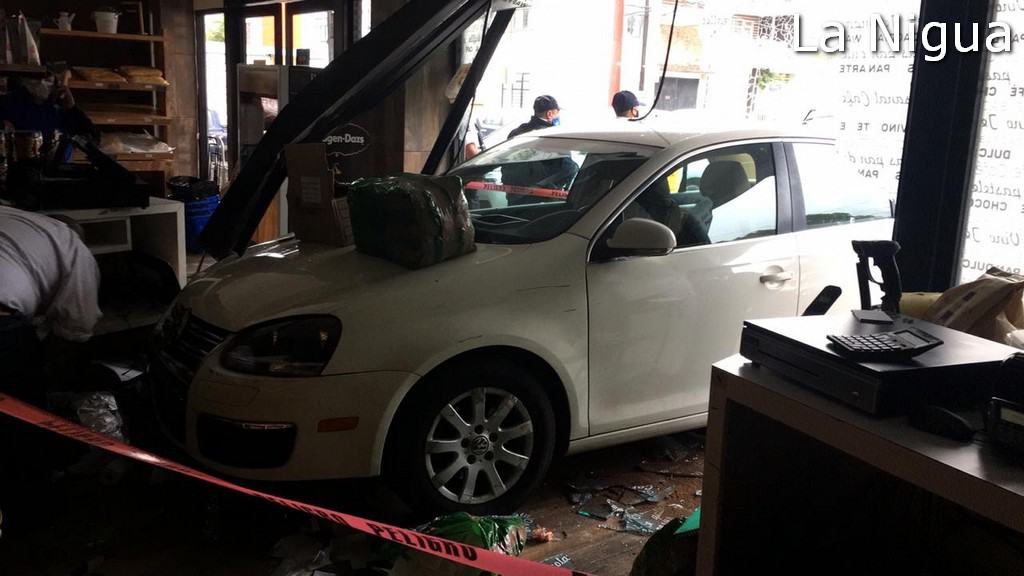 Los hechos se registraron poco después de las 15 horas en la tienda Rovianda Plus que se ubica en la avenida Colón con calle sur 27, un auto marca Volkswagen ingreso al estacionamiento pero se siguió de frente hasta el interior de la tienda.