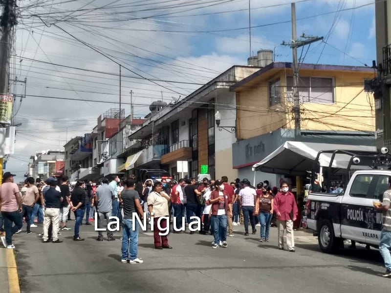 Xalapa, Ver.- Comerciantes de la Plaza de Clavijero están bloqueando el crucero de las calles Guadalupe Victoria y Francisco Javier clavijero, piden a las autoridades del H. Ayuntamiento de Xalapa, que los dejen trabajar en esta temporada de Navidad, ya en su mayoría sus madres solteras y tienen que mantener a sus familias, en total son más de mil comerciantes y no van a retirar del bloqueo, así lo manifestó una de las comerciantes de nombre Araceli.