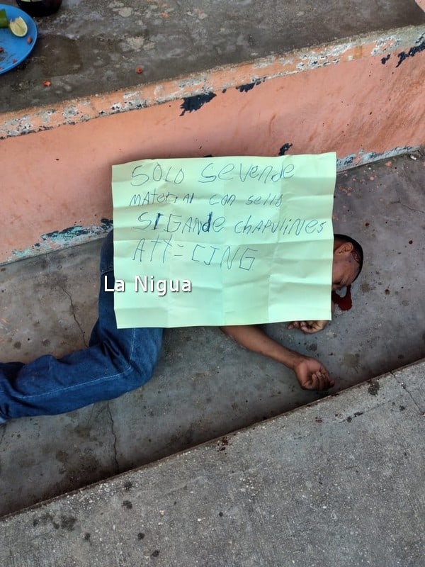 Sobre el cuerpo tirado y bañado en sangre de Ortiz Domínguez le dejaron una cartulina con un mensaje alusivo a presuntas actividades ilícitas del varón.