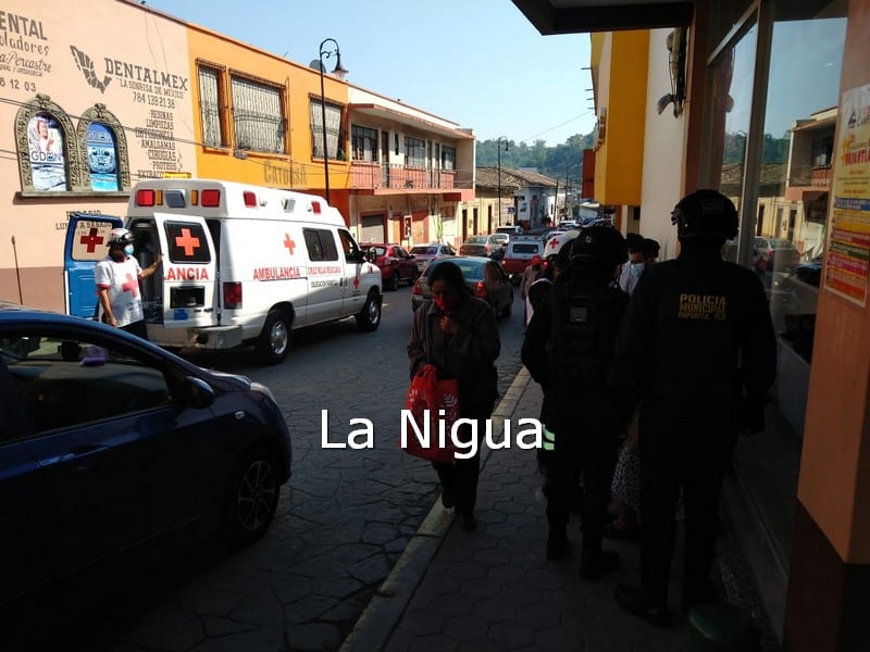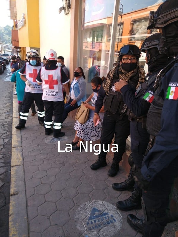 Solicitando el auxilio al llegar en las inmediaciones de la institución bancaria BANAMEX en la calle Enríquez donde entró en una severa crisis nerviosa.