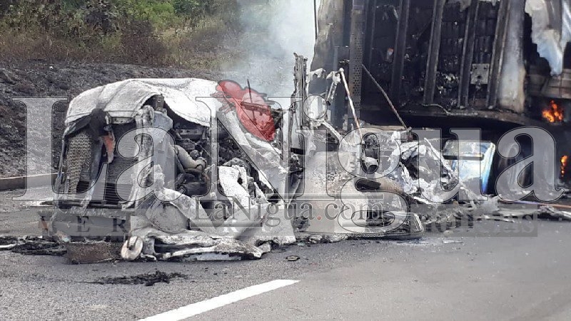Acayucan, Ver.- El infierno arribó una vez más a la Autopista La Tinaja-Cosoleacaque, luego de que dos unidades pesadas chocaran por alcance, originando que las dos ardieran en su totalidad; personal de Bomberos y de Protección Civil de Acayucan al mando del titular Demetrio Andrade tuvo que vestirse nuevamente de héroes para controlar el siniestro aunque para ello tardaron alrededor de tres horas.