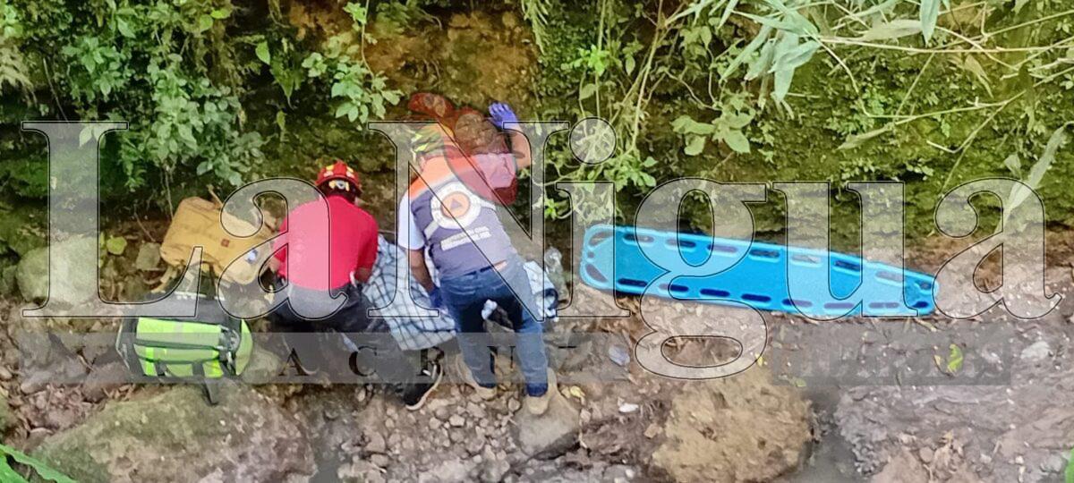 En ese momento, el terreno húmedo cedió bajo sus pies, lo que ocasionó que cayera aproximadamente diez metros hasta el cauce del río.