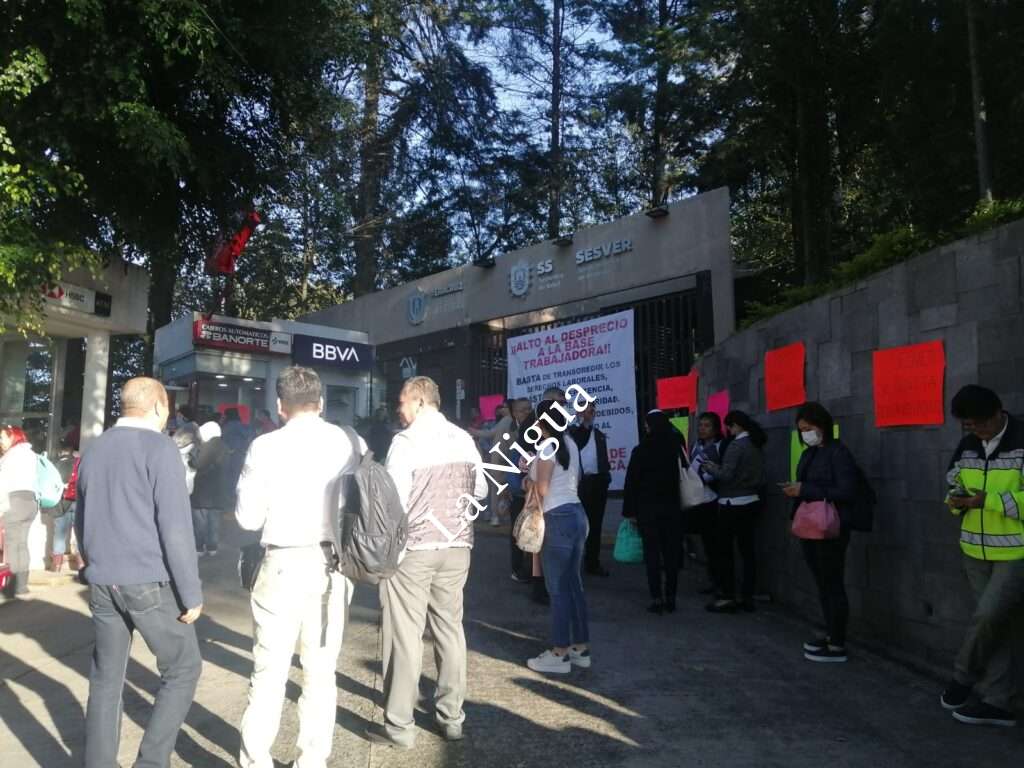Los manifestantes colocaron varias lonas grandes en las diferentes entradas y salidas principales de esta secretaría y por lo tanto cientos de trabajadores de esta secretaría de salud no pueden entrar a trabajar