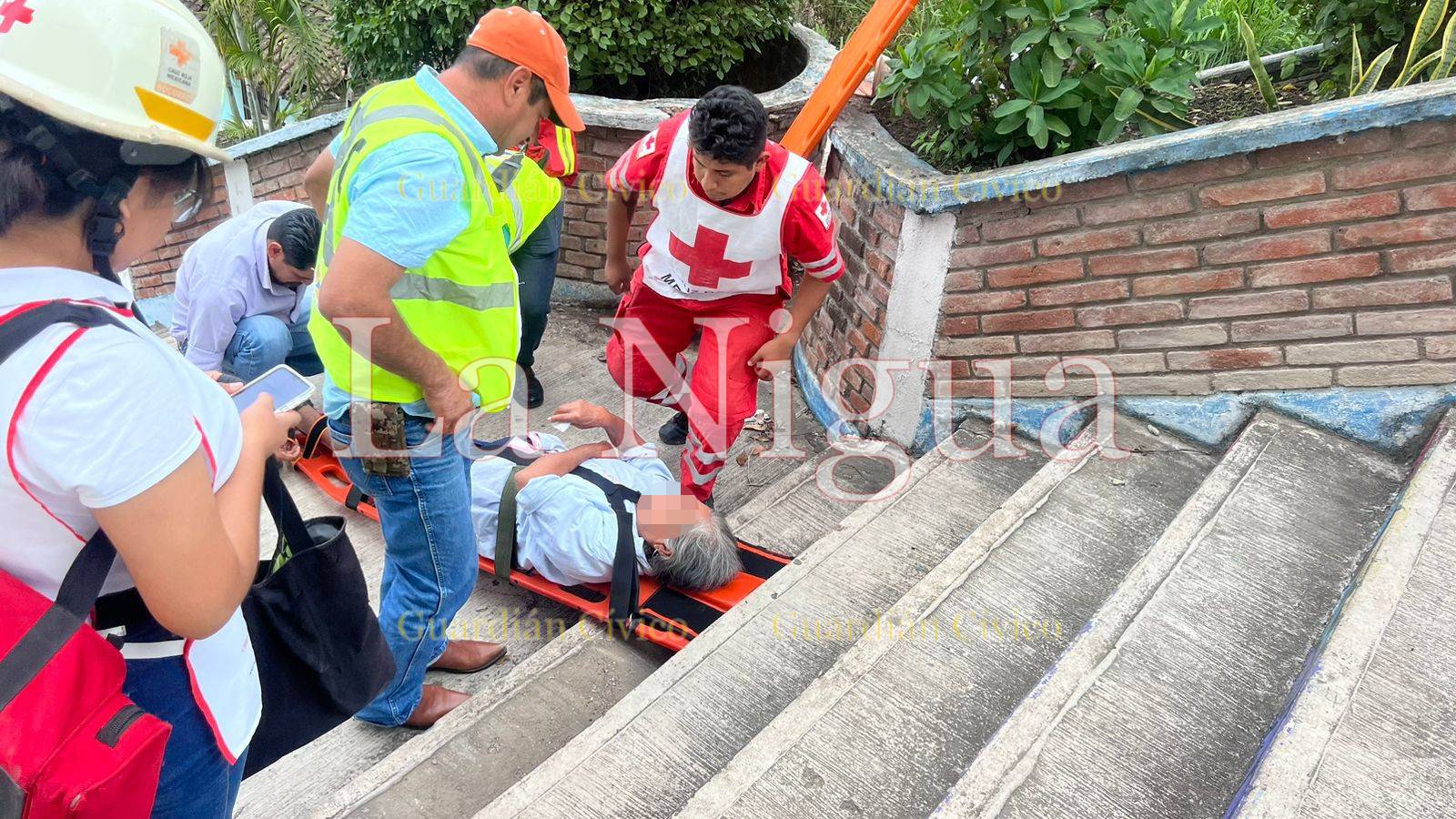 Fue la tarde de ayer alrededor de las 15:00 horas cuando los paramédicos de la cruz roja recibieron el reporte de una persona lesionada, refiriendo que se encontraba una mujer muy delicada entre las escalinatas de la calle 2 de Abril y pedían que fuera atendida rápidamente por su avanzada edad.
