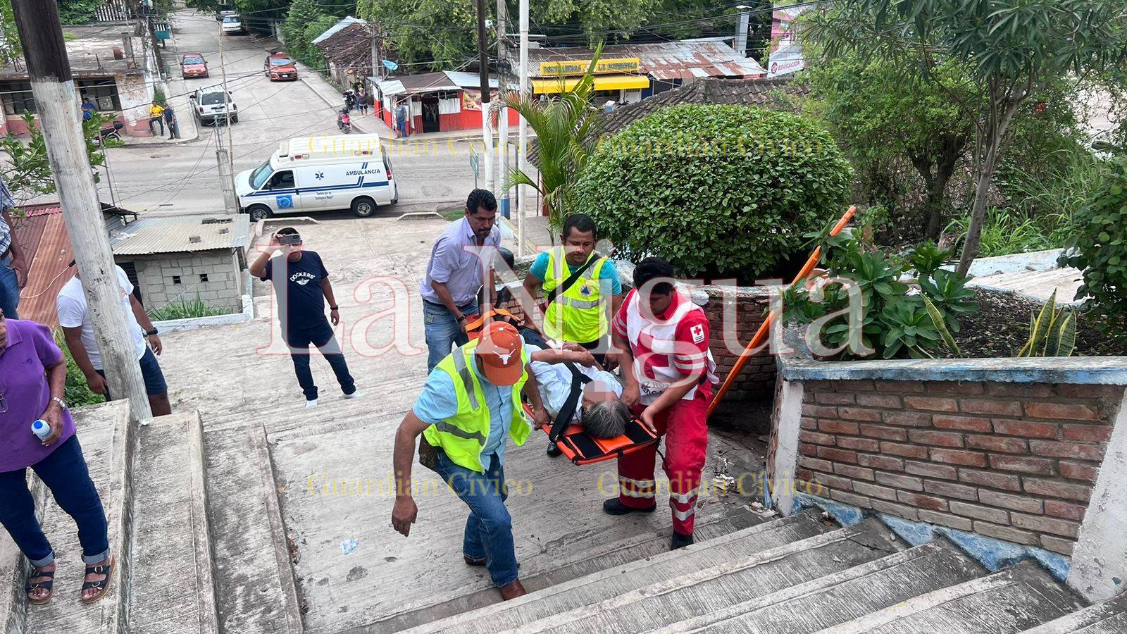Tantoyuca, Ver.- Una infortunada abuelita sufrió una aparatosa caída que la dejó en una cama de hospital, estos hechos ocurrieron en la calle 2 de abril de la colonia Del Valle, hasta ese lugar los paramédicos de la cruz roja y protección civil brindaron la rápida intervención a la señora, esta fue llevada de urgencias al nosocomio civil Humberto Silva Castillo.
