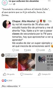 Otro es el caso de la usuaria Aleside, quien compartió la historia de su mamá de 76 años que decidió aprovechar las clases en la tele para “aprovechar a ver qué aprendo”.