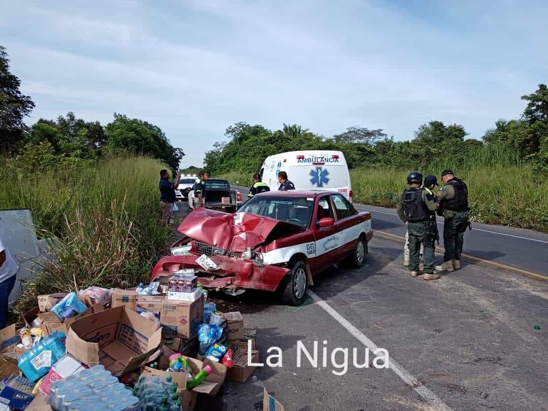La camioneta de color blanco trasladaba productos de la canasta básica, mientras que la unidad de taxi trasladaba a ciudadanos a la Llave del Sureste.