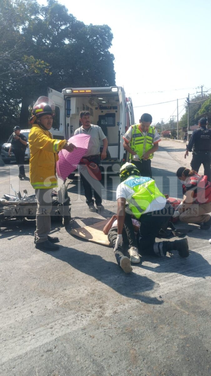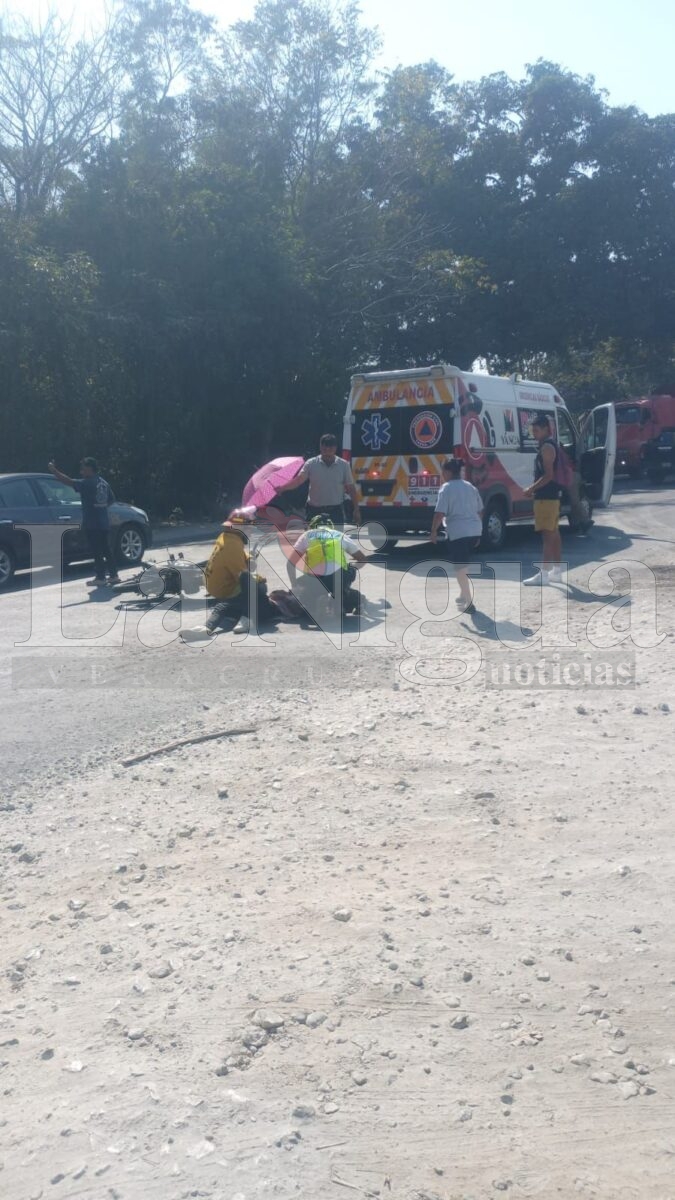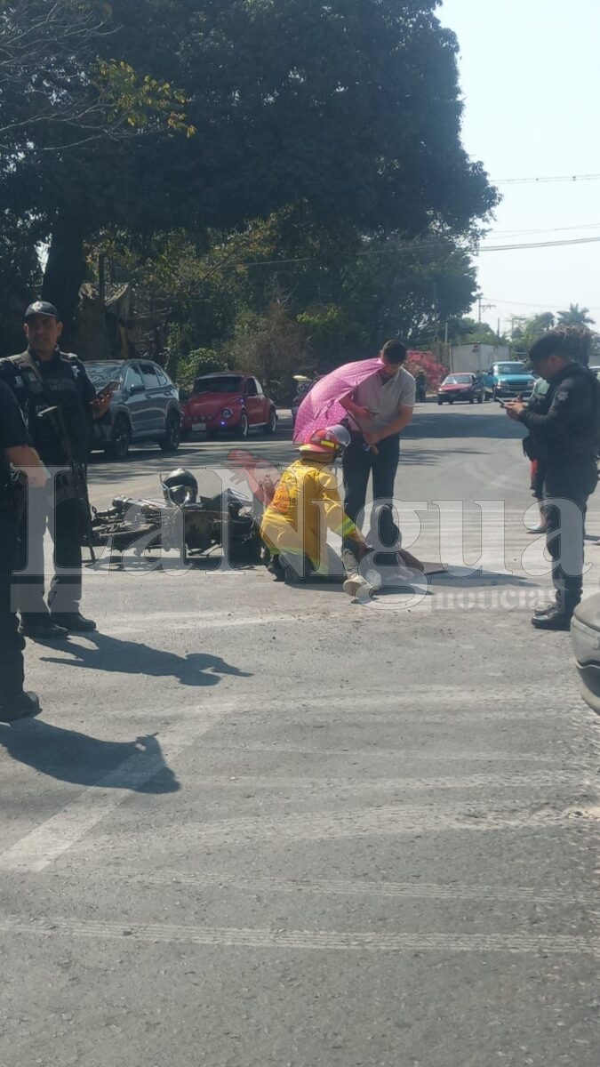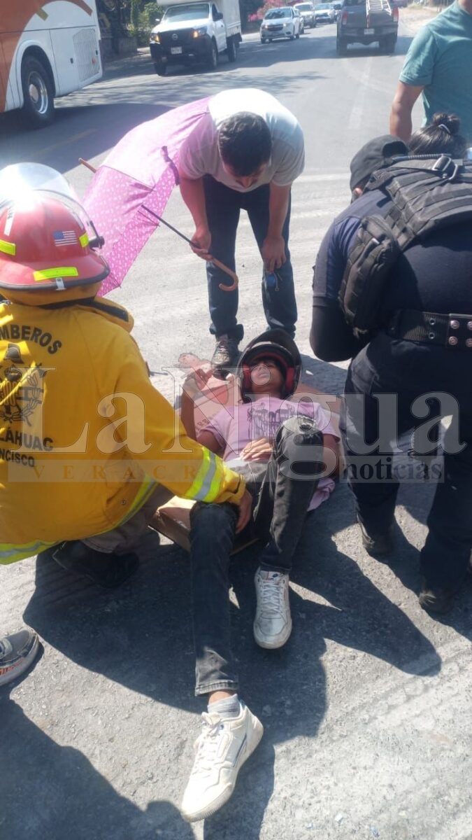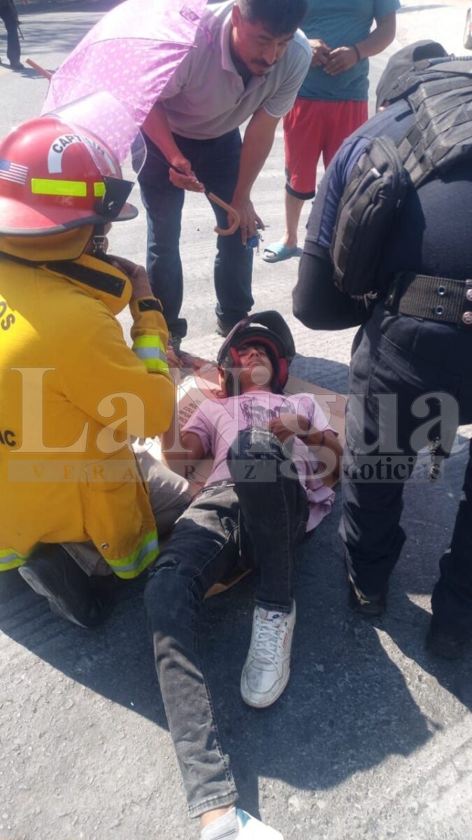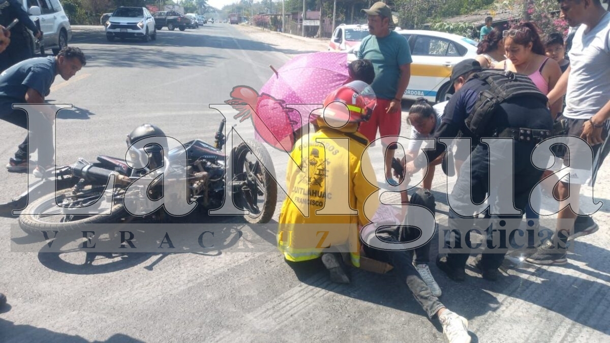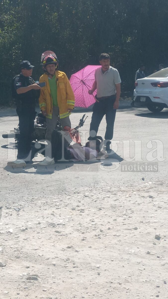 Yanga, Ver.- La tarde de este sábado se registró un fuerte accidente sobre la carretera federal Yanga–Córdoba, a la altura de la parada conocida como “La Concha”, donde una motocicleta fue impactada por una camioneta, resultando dos jóvenes lesionados.