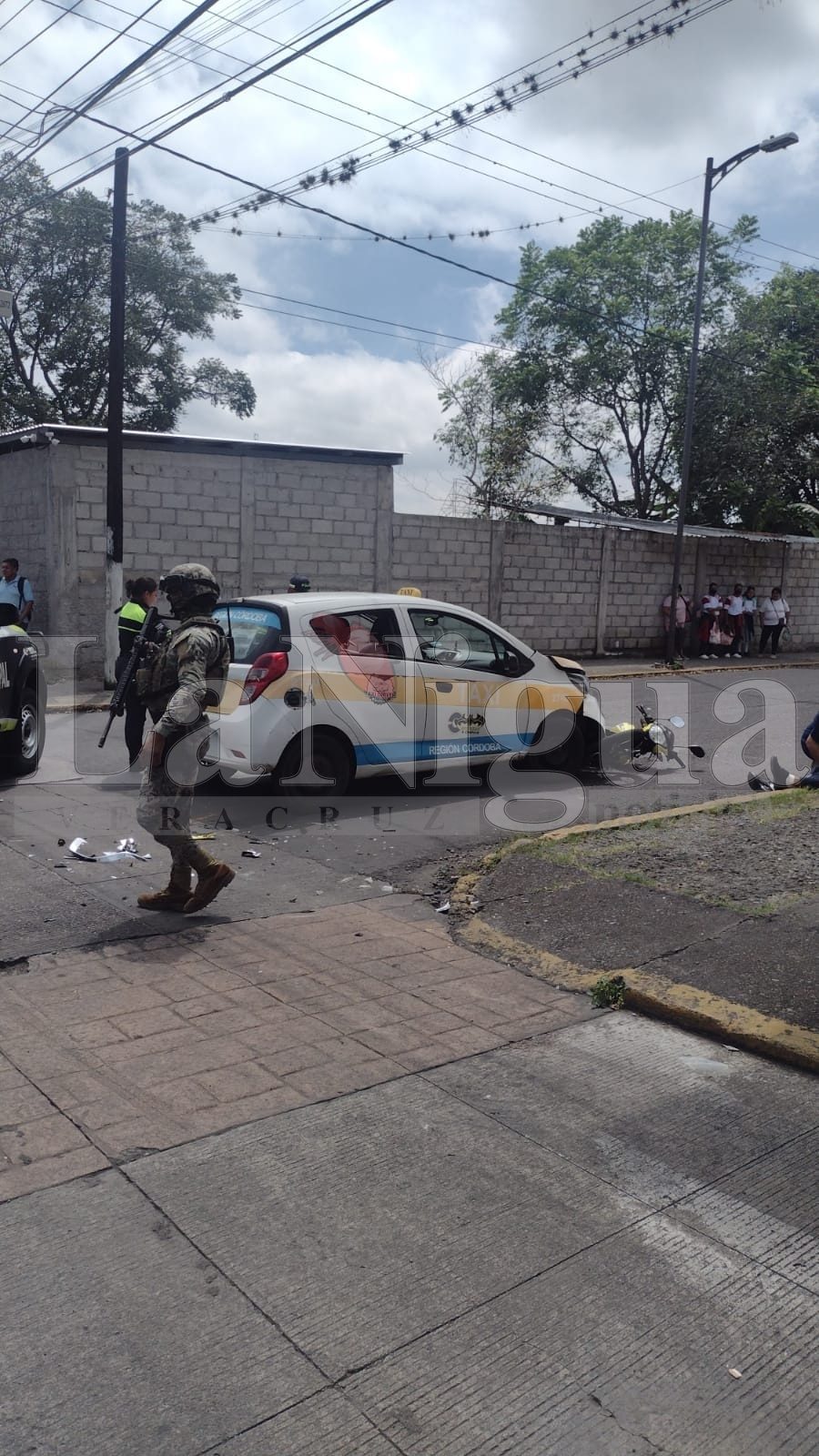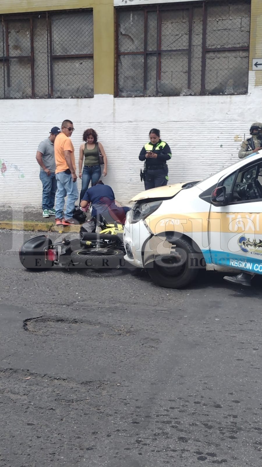 Esta tarde, se registró un accidente en la esquina de Calle 27 y Avenida 1, donde un taxi de la ciudad de Córdoba, marcado con el número 2740, atropelló a un motociclista.