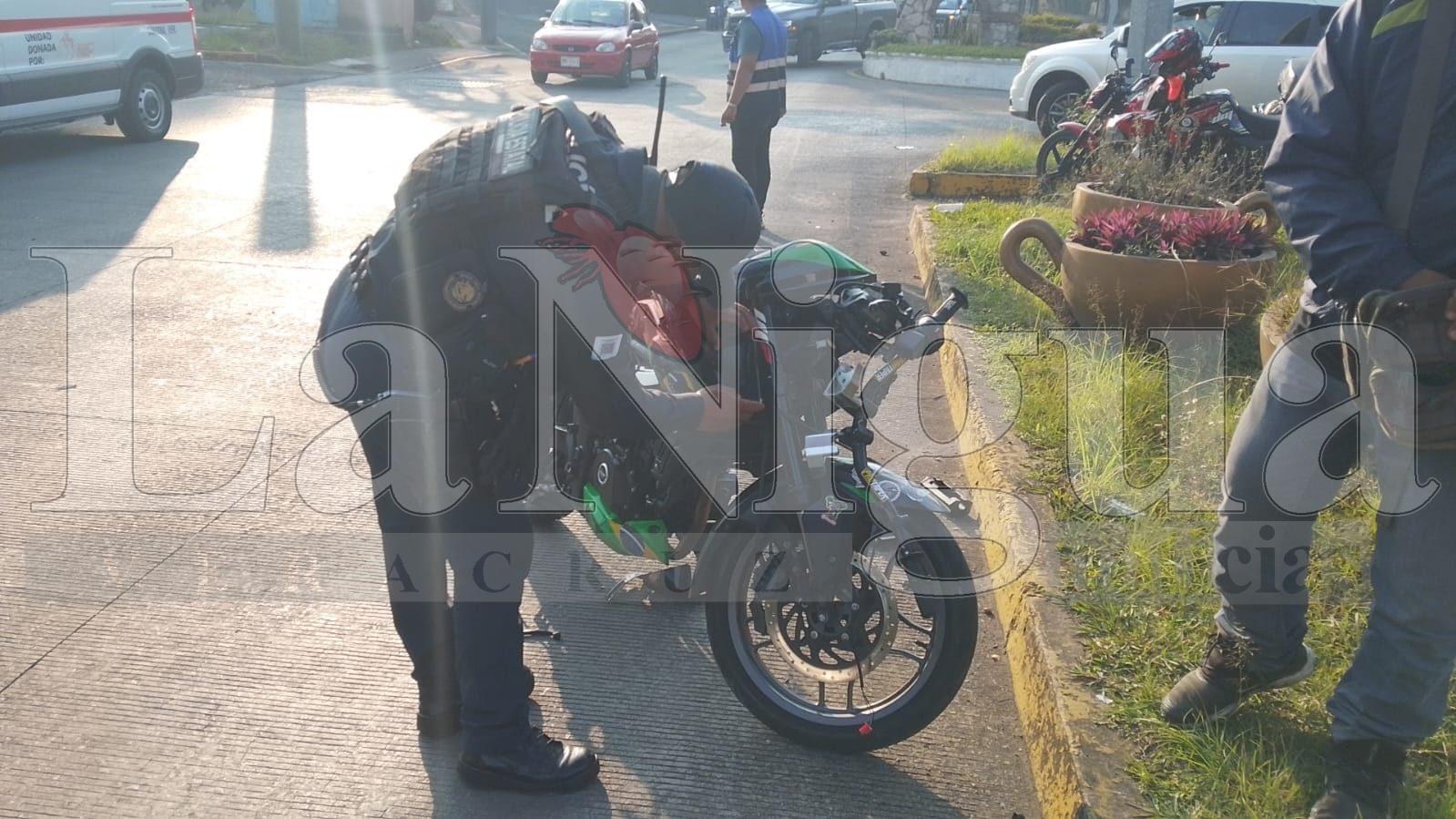 Córdoba, Vet.- La tarde de este día se registró un accidente vial en el área del semáforo ubicado en el arco de Shangri-La, donde se vieron involucrados una motocicleta y un automóvil particular de color blanco, lo que dejó como saldo dos jóvenes lesionados.