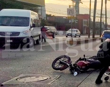 Córdoba, Ver.- La mañana de este lunes, alrededor de las 7:00 a.m., se registró un accidente en la intersección de la avenida 11 y calle 12, donde una motocicleta y una camioneta colisionaron mientras circulaban en la misma dirección.