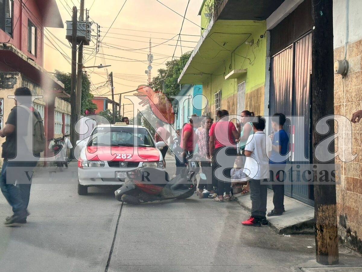 La calle Tierra y Libertad de la colonia Agraria, fue escenario de un accidente entre la unidad de pasajeros marcado con número 282 y una motoneta con saldo de una joven mujer lesionada.