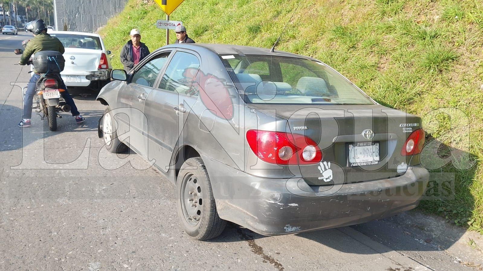 De acuerdo con la información recabada en el lugar, un vehículo color blanco circulaba al frente, mientras que un automóvil color gris lo hacía detrás. Presuntamente, el conductor del vehículo gris se distrajo por un momento, lo que provocó que impactara por alcance al automóvil blanco cuando ambos intentaban incorporarse a la vialidad principal.