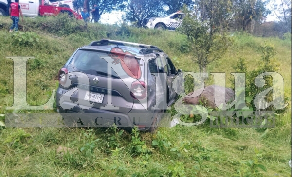 Una camioneta Renault Duster gris, con placas YRB-011-B, cayó fuera de la carretera, dejando a la copiloto Alejandra Palacios Jiménez, de 49 años, con serias lesiones en la columna y cadera. El conductor, Germán Fernández Dorantes, de 70 años, resultó ileso.