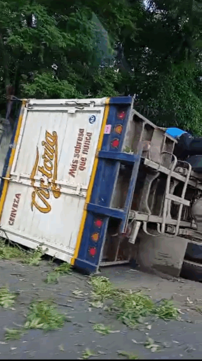 Una unidad de carga que transportaba cerveza terminó volcada por razones aún no confirmadas. Al lugar acudieron paramédicos del Sistema de Atención Médica de Urgencias de Veracruz (SAMUV) con base en Yanga, quienes brindaron atención prehospitalaria a los lesionados.