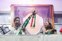 Y lo hizo acompañado de su esposa, la señora Anagon Mendoza González, así como del honorable Cabildo, quienes estuvieron con él desde el balcón del Palacio municipal ante cientos de ciudadanos que se congregaron en la cabecera municipal para estar presente en esta fecha tan importante para todos los mexicanos.