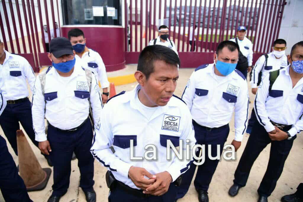 Acayucan, Ver.- Treinta y tres elementos de la empresa Servicios EspecialIzados de Investigación y Custodia S.A., (Seicsa) adscritos a la Estación Migratoria de Acayucan se manifestaron en la acceso principal para manifestar públicamente los abusos laborales y sexuales de los que han sido víctimas por parte del comandante Rosalino Fiscal Málaga.