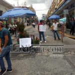 Xalapa, Ver.- Integrantes de la organización Vendedores Independientes Veracruzano ( VIVE ), se manifestaron en el crucero de las calles Manlio Fabio Altamirano y Revolución, debido que la inspectora de comercio municipal de Xalapa, conocida como “ Charo “ golpeó con una rejilla de plástico a Magali, una vendedora ambulante de calcetas, además de arrebatarle su mercancía, no conforme con eso quisieron también robarse la mercancía de otros vendedores, así lo manifestó Sabino Meza Gómez dirigente general de esta organización.