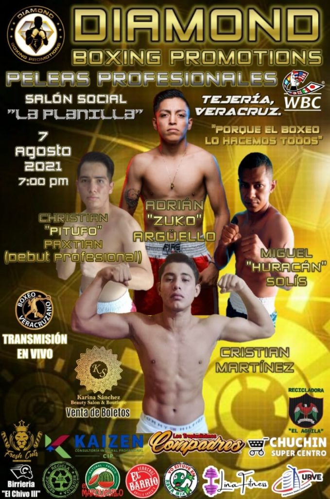 Será en Tejería, Veracruz el 7 de agosto en la función de box donde también entrarán en acción Cristian Martínez, Miguel “Huracán” Solís y Crhistian “Pitufo” Paxtian quien hará su debut en el boxeo profesional.