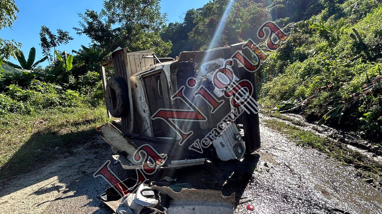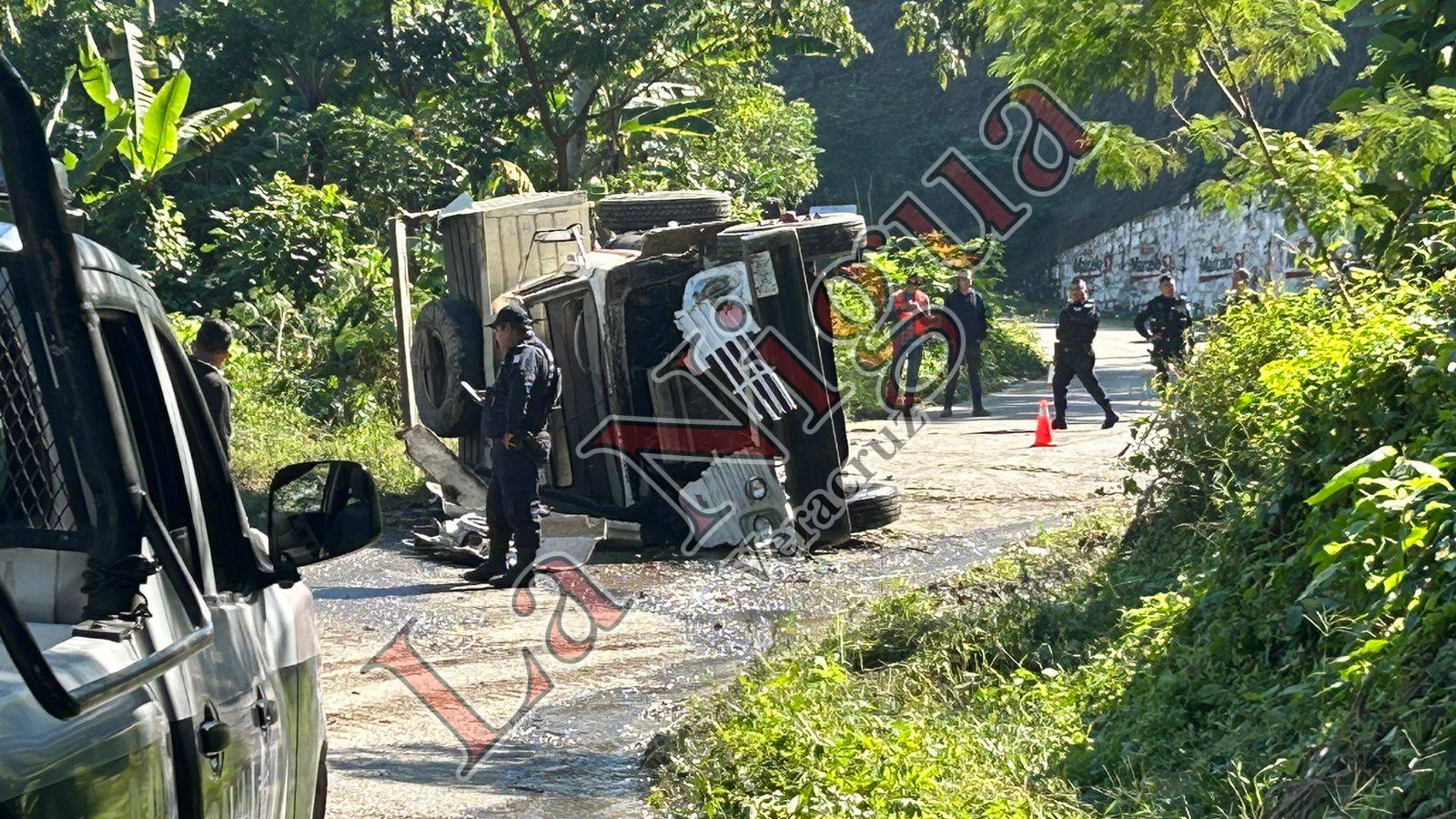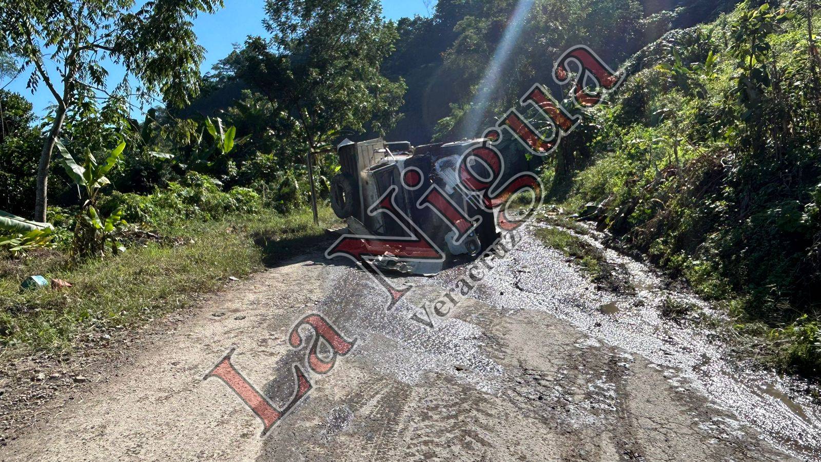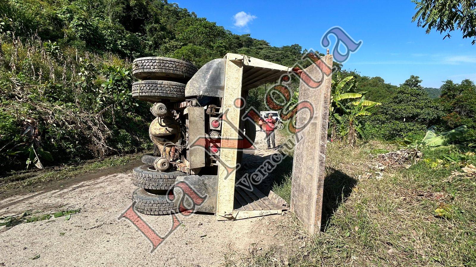 Según los testigos, la pesada unidad transitaba por un camino angosto de terracería que conduce a la localidad de Tamalcuatitla donde repentinamente se fue de lado cayendo por una ladera hasta la vía estatal.