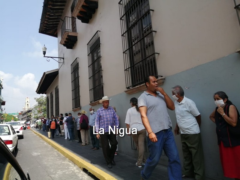 La fila se podía observar desde la calle José María Mata, donde la gente de la tercera edad cobra su pensión.