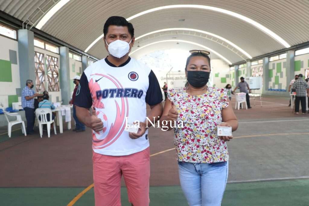 Atoyac, Ver.- Minutos antes de las 10 de la mañana de este domingo 10 de abril, el alcalde de Atoyac, Carlos Alberto Ventura de la Paz y su esposa, Anagon Mendoza González, acudieron a emitir su voto en la consulta de revocación de mandato, en la casilla 408 ubicada en el auditorio de Atoyac.
