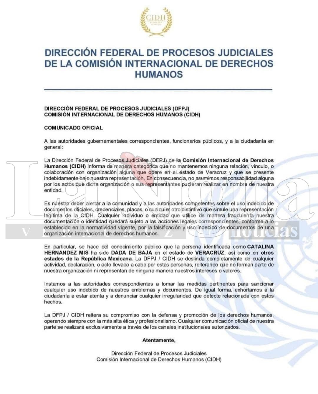 Autoridades y especialistas en derechos humanos advierten que esta supuesta comisión no cuenta con reconocimiento oficial, ni de la Comisión Estatal de Derechos Humanos de Veracruz (CEDH Veracruz) ni de la Comisión Nacional de los Derechos Humanos (CNDH), y tampoco aparece registrada en directorios oficiales.