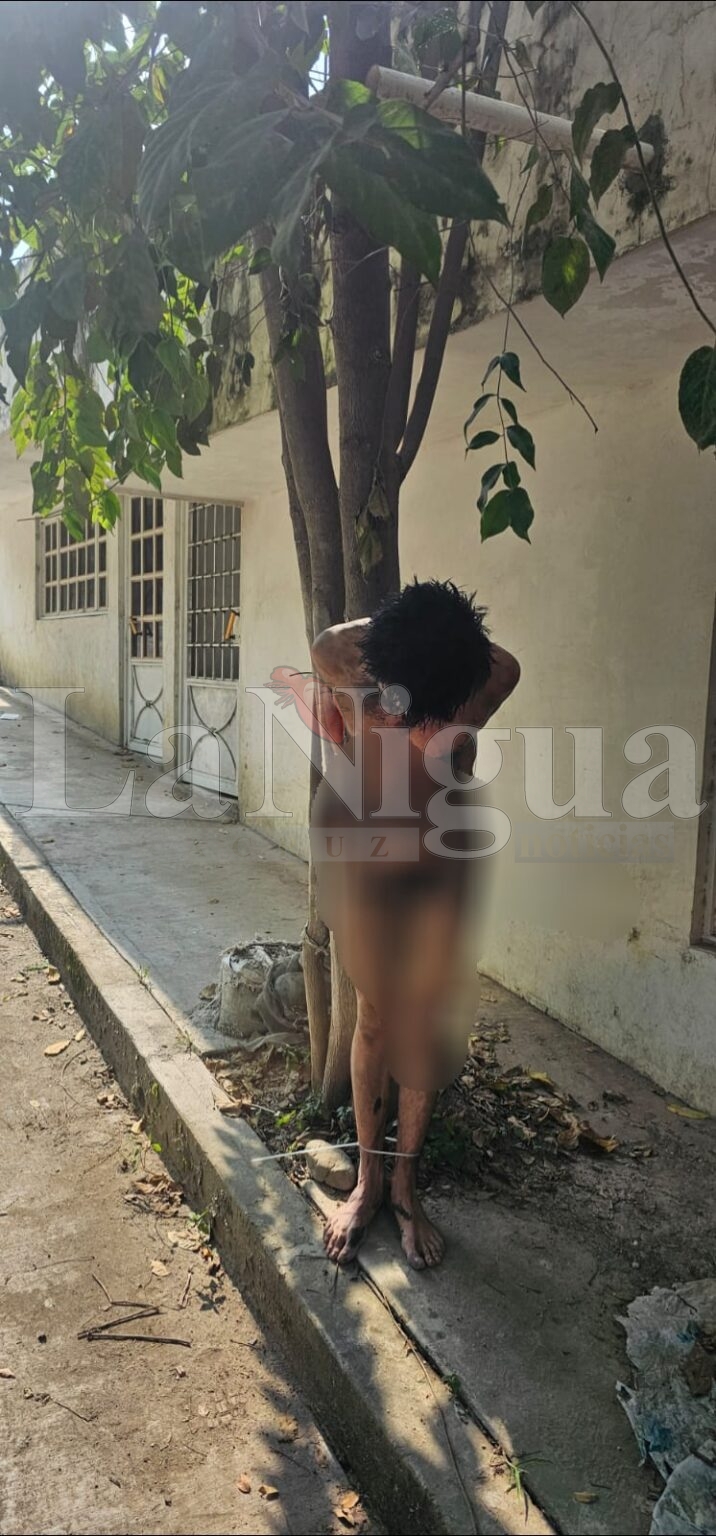 Según los reportes, el sujeto fue localizado por las autoridades sin ropa, pintado del cuerpo y atado de un árbol en las inmediaciones de la colonia Chacatitla.