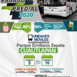 Resaltó que también podrán efectuar el pago de sus contribuciones en las ventanillas de la Unidad Móvil de Servicios Municipales que se encuentra instalada en el parque Emiliano Zapata de Cuautlapan en un horario de atención de lunes a viernes 9:00 a.m. a 3:00 p.m. y los sábados de 10:00 a.m. a 2:00 p.m.