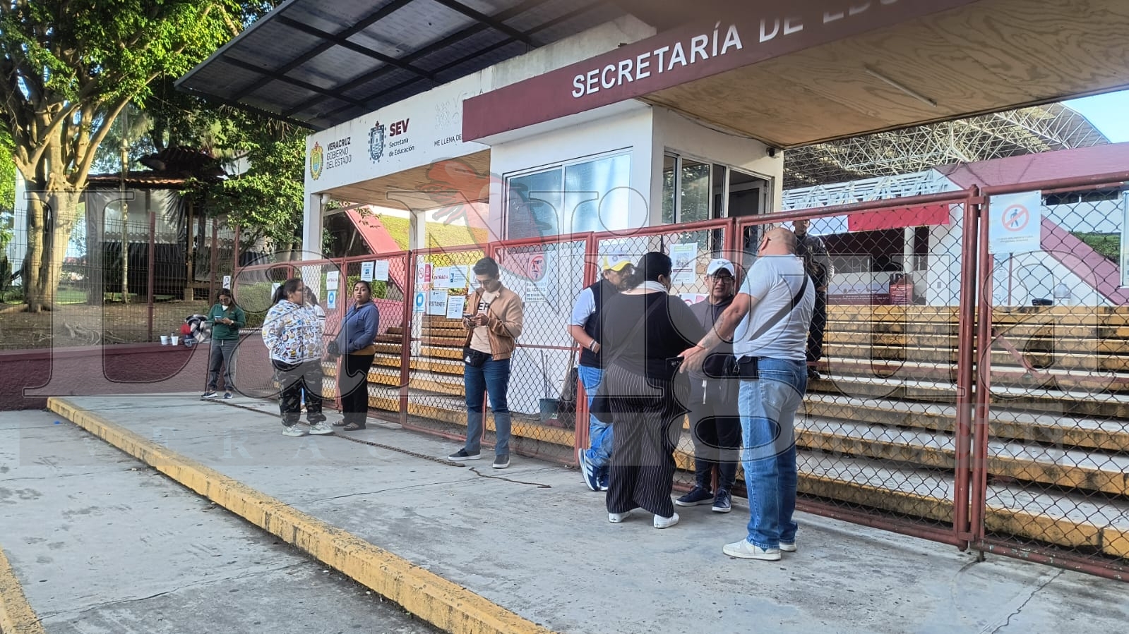 Xalapa, Ver., septiembre 4 de 2025. – Desde las 7:30 de la mañana de este jueves, un pequeño grupo de docentes pertenecientes a la Sección 56 del Sindicato Nacional de Trabajadores de la Educación (SNTE) se manifestaron en la entrada principal de la Secretaría de Educación de Veracruz (SEV), con la exigencia de ser atendidos por la titular, Claudia Téllez Espinosa.