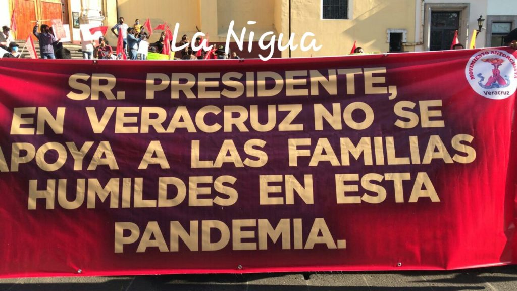 Los manifestantes denuncian la falta de atención en su petición de que se entregara apoyos alimentarios a todas las familias que se quedaron sin trabajo, sin ingresos, para sostener a sus familias, durante la pandemia del Coronavirus Covid-19, por lo que pasan hambre en sus hogares.