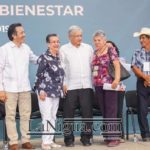 Por su parte, la Maestra María Luisa Albores González de la Secretaria del Bienestar, manifestó que en la región de Poza Rica fueron detectadas más de 85 mil personas en pobreza y esta es la razón de anunciar, programas integrales de Bienestar, de manera simbólica fueron entregadas las tarjetas del programa “Sembrando Vida” a Zenaida San Martín de Papantla y César Moreno de Tihuatlan, igualmente Sarahi Muñoz y Zabdi Velázquez del programa de pensiones para personas con discapacidad, Zenaida Espinoza y Alejandro Castillo Pérez de pensión para adultos mayores.